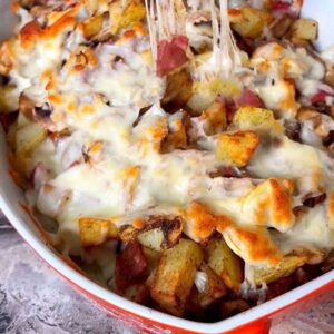 سیب زمینی سرخ شده ، قارچ ، پنیر، ادویه به مخصوص .