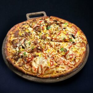 خمیر آمریکن – مرغ مرینت شده + گوشت رست بیف + ژامبون ۸۰٪ + کالباس پپرونی