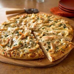 خمیر آمریکن + مرغ مرینت شده + سس آلفردو + پنیر ترکیبی