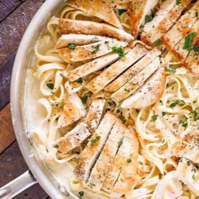 بنه پاستا، مرغ مزه دار شده ، قارچ ، شیر خامه ادویه سکرت، مونزارلا تخته ای